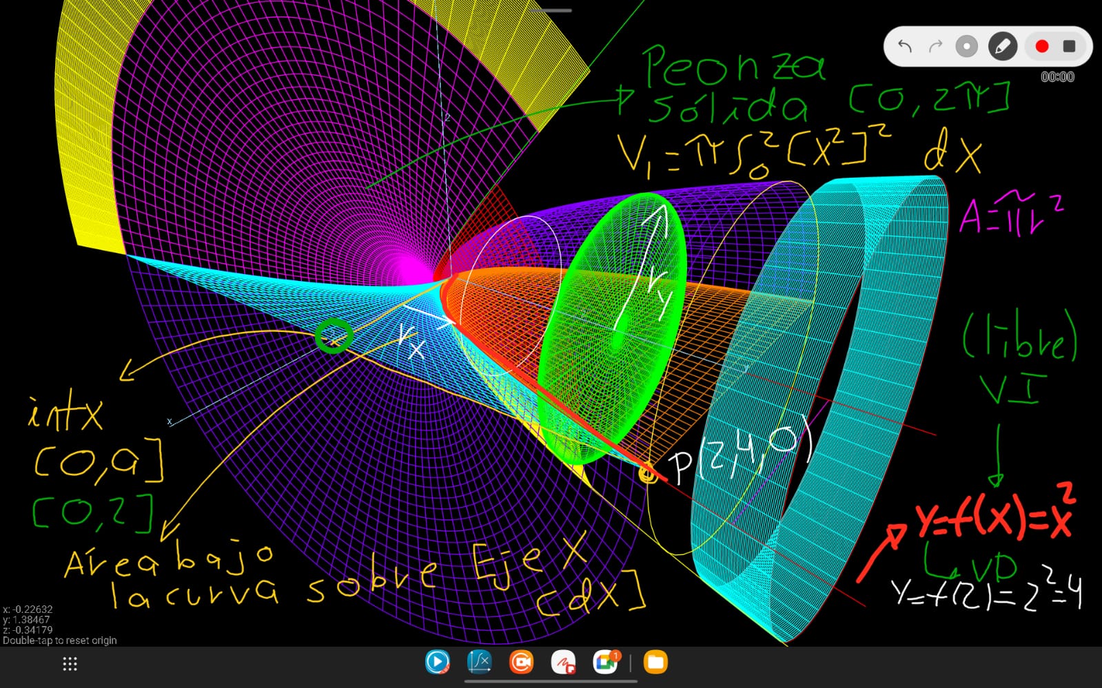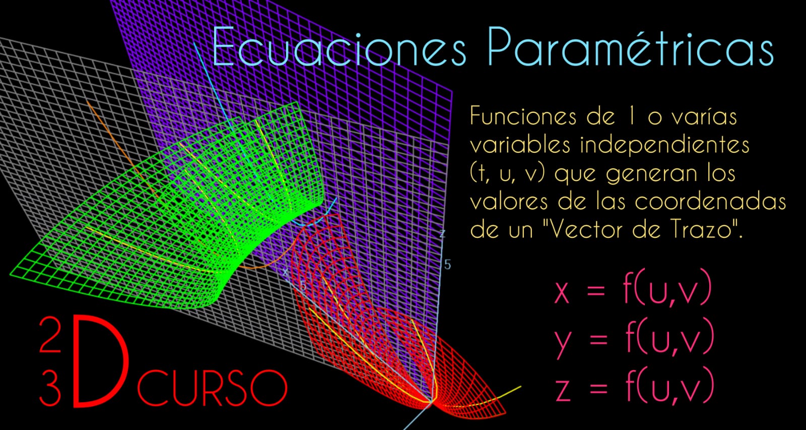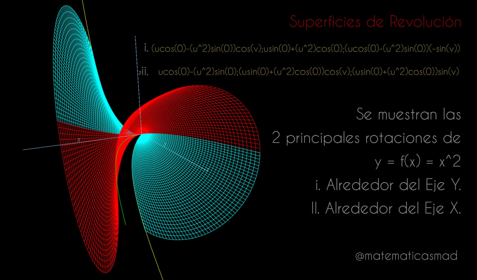 Explica y visualiza conceptos avanzados como: Secciones Cónicas, Sustitución Trigonométrica, Proyecciones del Toro con parámetros (u,v) e Interpretación Geométrica de la Derivada.